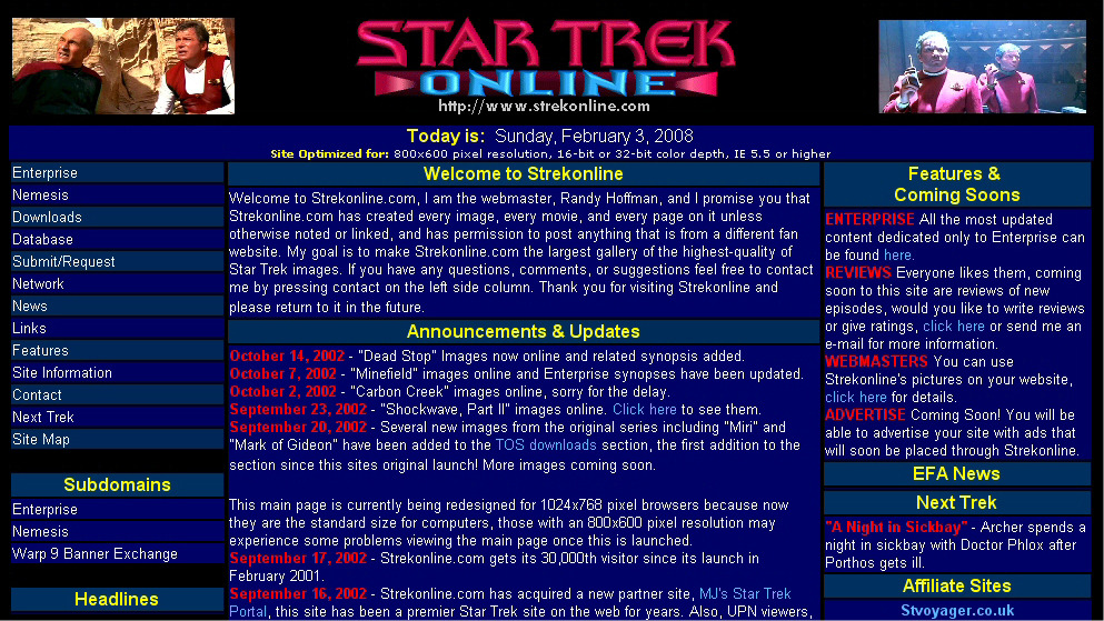 Strekonline.com homepage in 2002